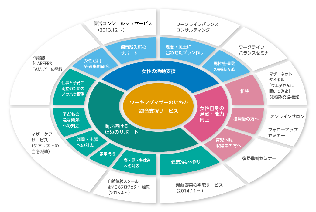 ワーキングマザーが仕事と育児・家事・看護を両立していく上での問題点を解決し、「